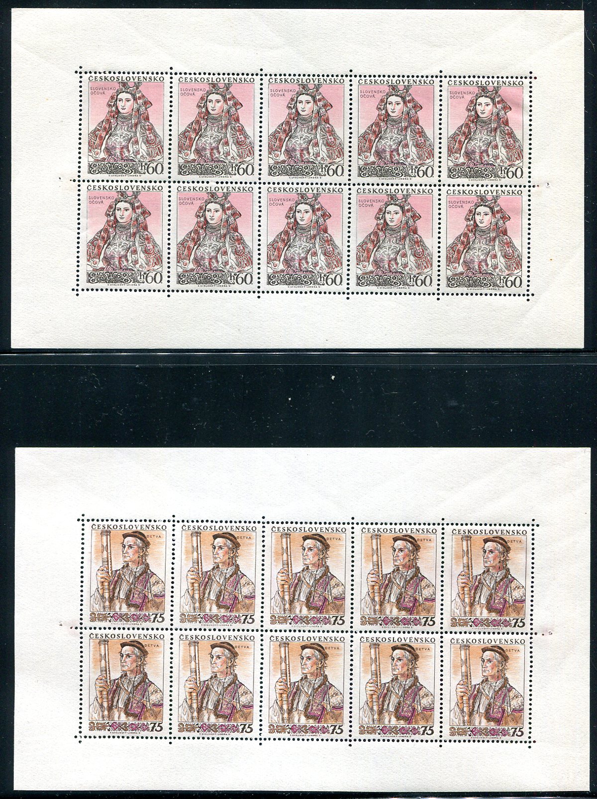 VF mint complete panes of 10 of the 1955 issue "Regional Costumes" set of four. All Never Hinged, but a couple have small areas of gum disturbance from storage. A key set, valued at US$37.00 per set as singles (x 10 sets = US$370.00). Scott has a premium noted for complete panes.2022 Scott US$450.00 =
