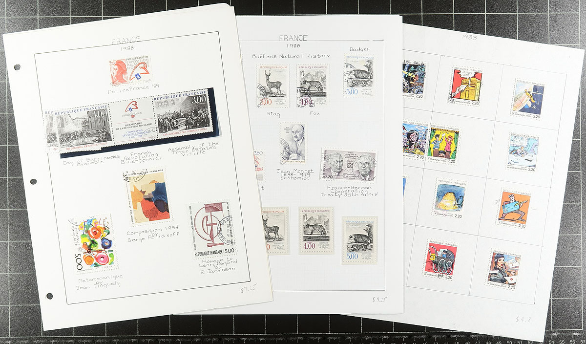 Lightly duplicated, mostly used 1980 to 1989 period collection, all mounted on hand-lettered quadrille pages. All regular commemorative and definitive issues (no "Back of the Book" material). A total of 550 stamp and souvenir sheets. Owner's cat US$378.35 =