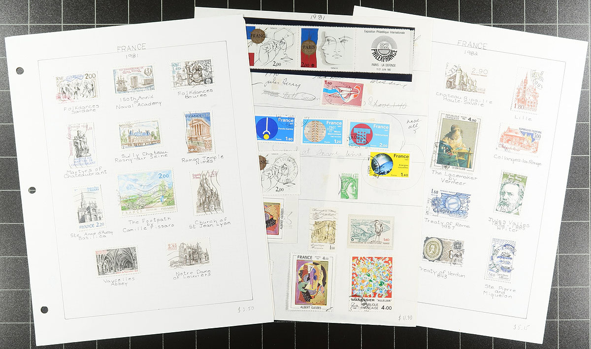 Lightly duplicated, mostly used 1980 to 1989 period collection, all mounted on hand-lettered quadrille pages. All regular commemorative and definitive issues (no "Back of the Book" material). A total of 550 stamp and souvenir sheets. Owner's cat US$378.35 =