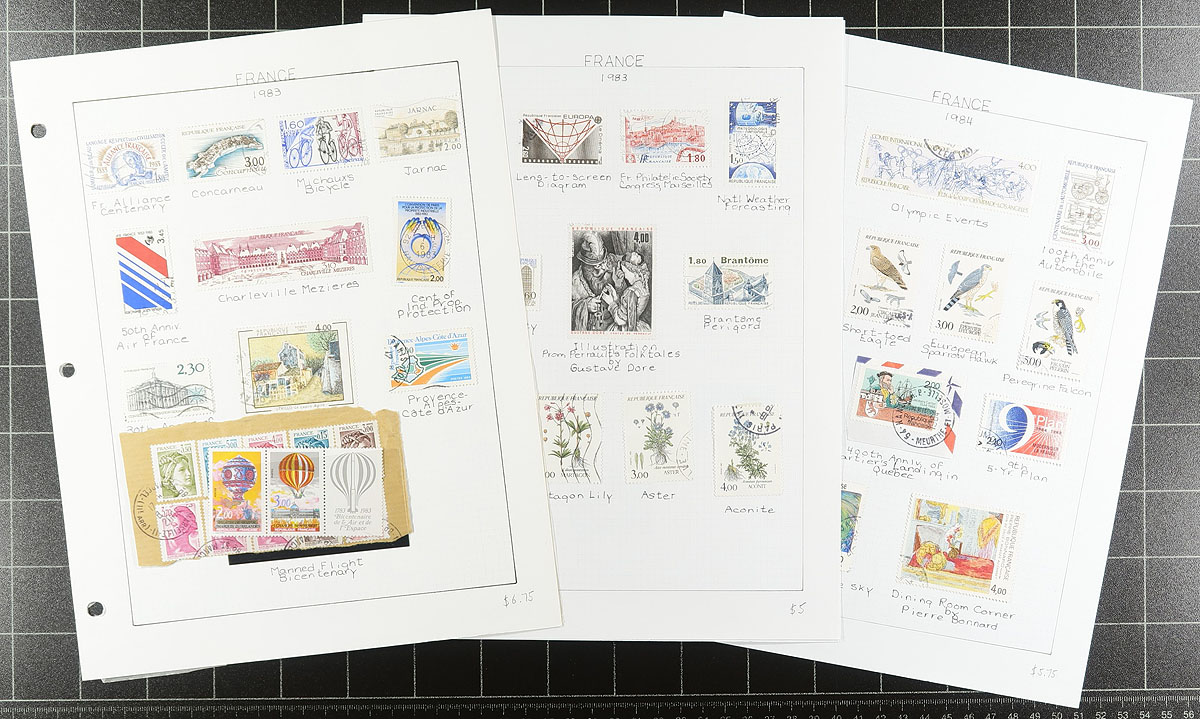 Lightly duplicated, mostly used 1980 to 1989 period collection, all mounted on hand-lettered quadrille pages. All regular commemorative and definitive issues (no "Back of the Book" material). A total of 550 stamp and souvenir sheets. Owner's cat US$378.35 =
