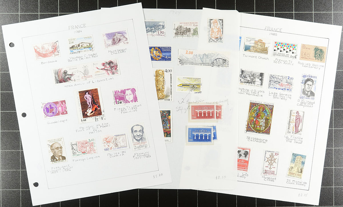 Lightly duplicated, mostly used 1980 to 1989 period collection, all mounted on hand-lettered quadrille pages. All regular commemorative and definitive issues (no "Back of the Book" material). A total of 550 stamp and souvenir sheets. Owner's cat US$378.35 =