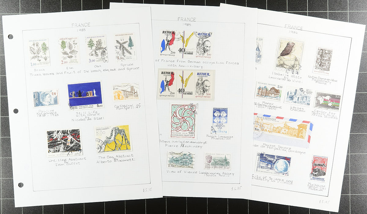 Lightly duplicated, mostly used 1980 to 1989 period collection, all mounted on hand-lettered quadrille pages. All regular commemorative and definitive issues (no "Back of the Book" material). A total of 550 stamp and souvenir sheets. Owner's cat US$378.35 =