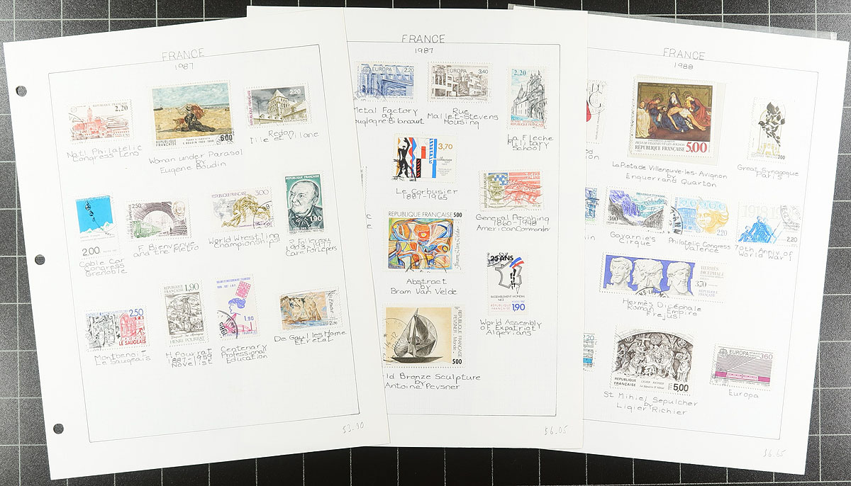 Lightly duplicated, mostly used 1980 to 1989 period collection, all mounted on hand-lettered quadrille pages. All regular commemorative and definitive issues (no "Back of the Book" material). A total of 550 stamp and souvenir sheets. Owner's cat US$378.35 =