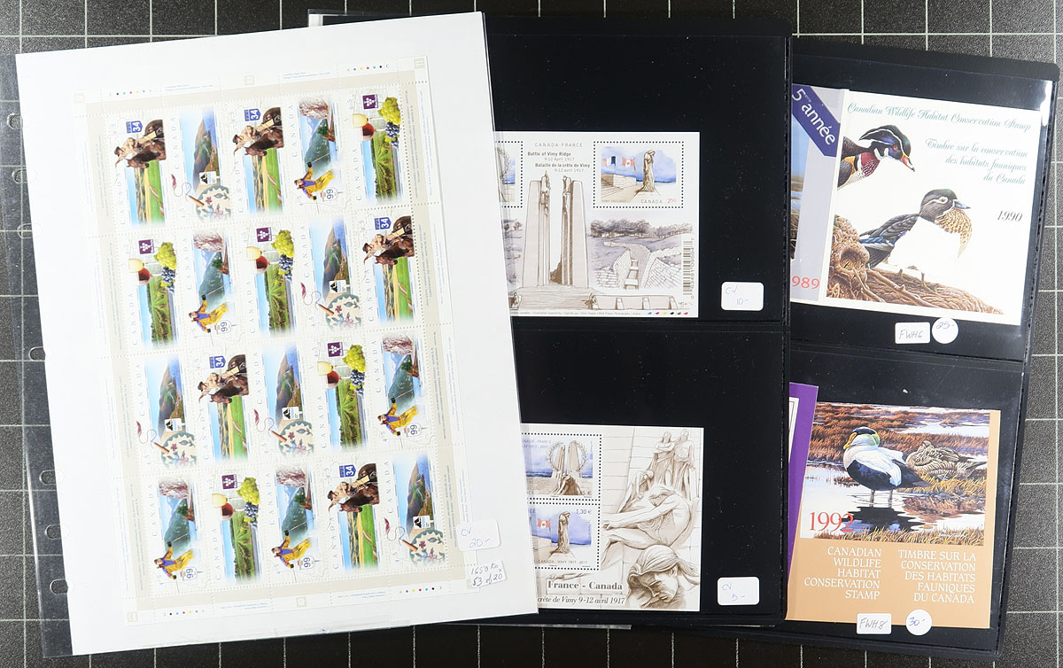 Modern Mint Madness. A high-quality offering of mint Never Hinged 1990's to 2010's stamps, sheets, souvenir sheets, Post Office packs and booklets. All neatly arranged on pages within a small box. MANY better items noted, such as the Vancouver 2010 Olympics OVPT souvenir sheets (in P.O. pack), "P" values (booklets and sheets), Lunar New Years, full sheets etc. All conservatively valued for the total usable postage value only. Total face value =