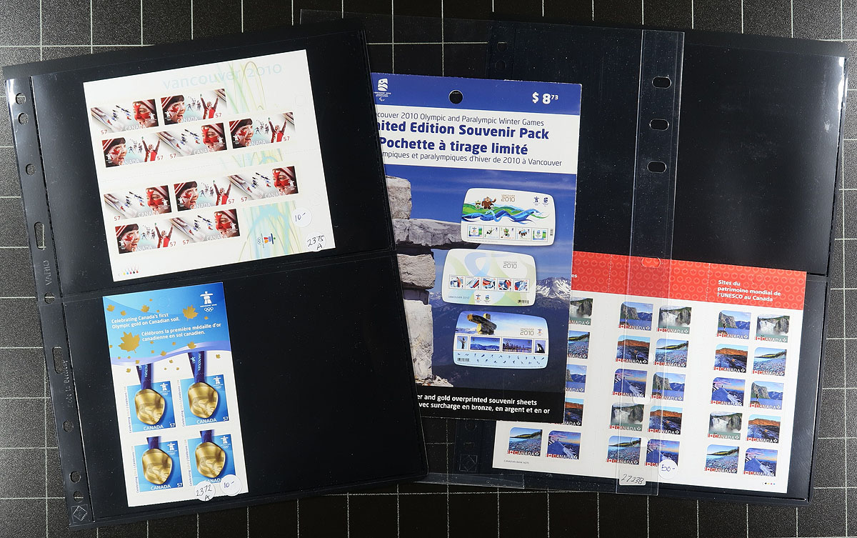Modern Mint Madness. A high-quality offering of mint Never Hinged 1990's to 2010's stamps, sheets, souvenir sheets, Post Office packs and booklets. All neatly arranged on pages within a small box. MANY better items noted, such as the Vancouver 2010 Olympics OVPT souvenir sheets (in P.O. pack), "P" values (booklets and sheets), Lunar New Years, full sheets etc. All conservatively valued for the total usable postage value only. Total face value =