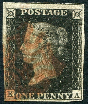 Four-margin used "Penny Black" position "K-A" with a "socked on the nose" red "Maltese Cross". A lovely example of the most recognized postage stamp in the world! 2025 Scott US$375.00 =
