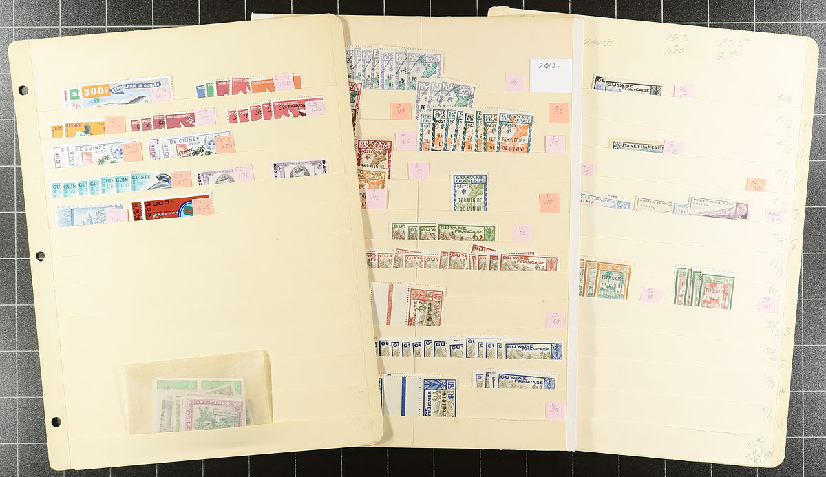 French Colonies Stock. An attractive and well-organized stock of French Colonies and independent former French Colonies, arranged on manila stockpages, within three binders, complemented by an additional binder of Andorra and pack of St.Pierre and Miquelon stock. Take a good look at the photos to appreciate the scope and detail that the previous collector made to sort and present these issues. Estimate =