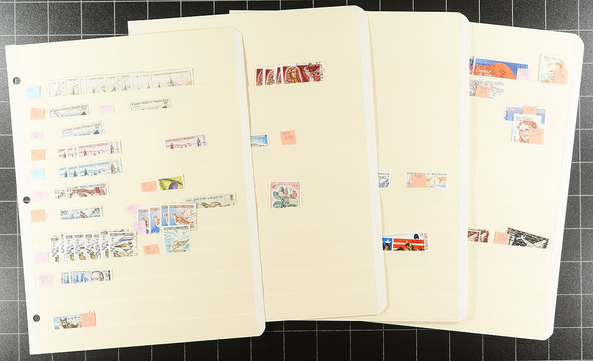 French Colonies Stock. An attractive and well-organized stock of French Colonies and independent former French Colonies, arranged on manila stockpages, within three binders, complemented by an additional binder of Andorra and pack of St.Pierre and Miquelon stock. Take a good look at the photos to appreciate the scope and detail that the previous collector made to sort and present these issues. Estimate =