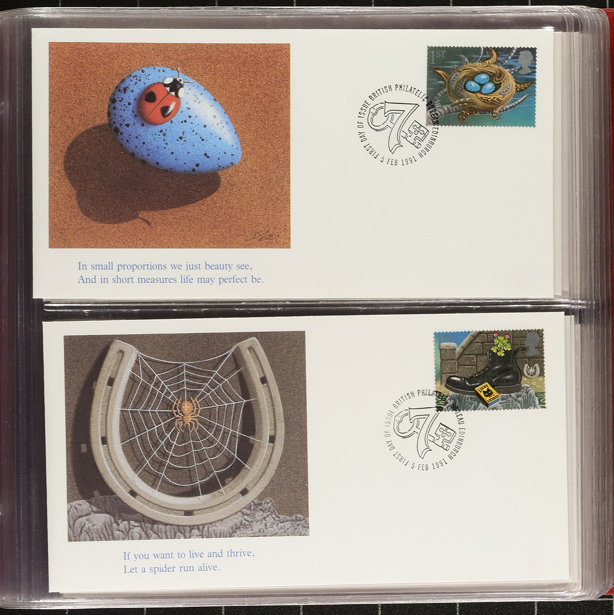 Covers Holding. A collection of roughly 350 first day covers, 1970-1990's, in 7 cover albums and with loose material. The collection contains singles and sets frankings, with roughly 120 Great Britain covers in 2 Westminster Collectors Society albums (and loose material), along with covers from Jersey and Guernsey in the remaining 5 albums. A nice clean lot for collectors and dealers alike. Estimate =