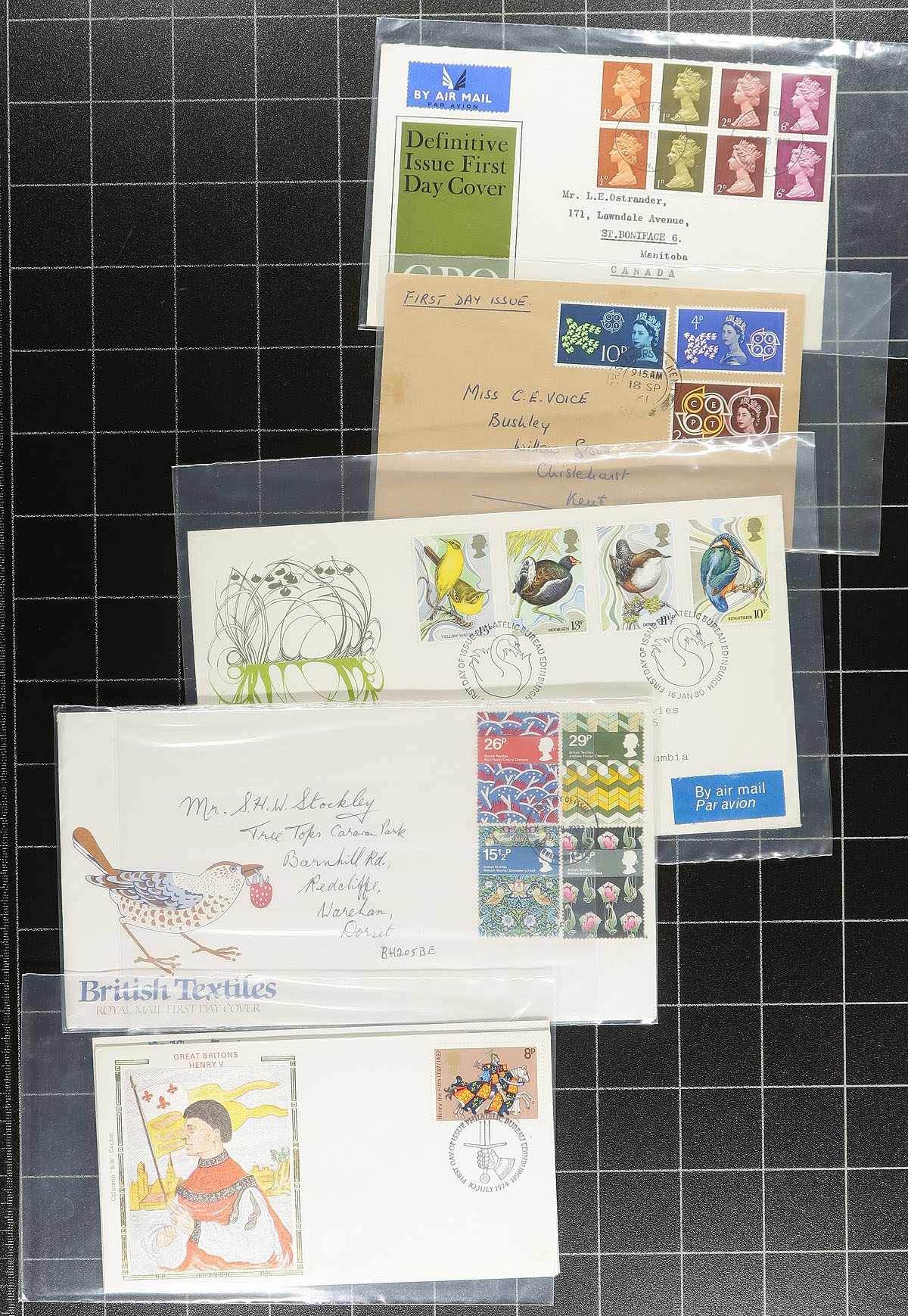 Covers Holding. A collection of roughly 350 first day covers, 1970-1990's, in 7 cover albums and with loose material. The collection contains singles and sets frankings, with roughly 120 Great Britain covers in 2 Westminster Collectors Society albums (and loose material), along with covers from Jersey and Guernsey in the remaining 5 albums. A nice clean lot for collectors and dealers alike. Estimate =