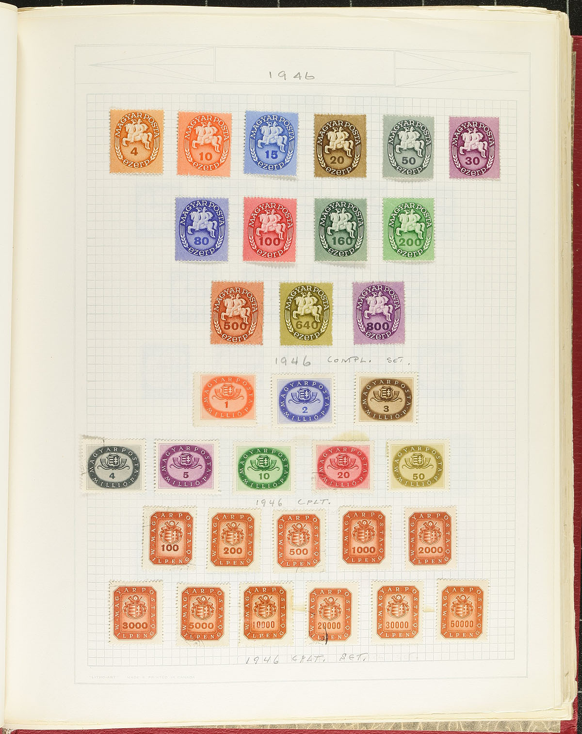 Accumulation of primarily mint Hungary items, 1940's-1980's, containing many hundreds of stamps in a springback album, stock pages, and glassines. A spot check indicated singles, sets, several souvenir sheets, and back of the book items, with some material cataloging $10 and up, including Scott #B18-B34 (mh, c.v. $98.90 total). Most of the material has been catalogued using an older Scott catalogue totaling US$489.00, leaving potential finds to the dedicated collector. A nice start to a mint Hungary collection, noting many topical and thematic possibilities, overall very fine. Estimate =