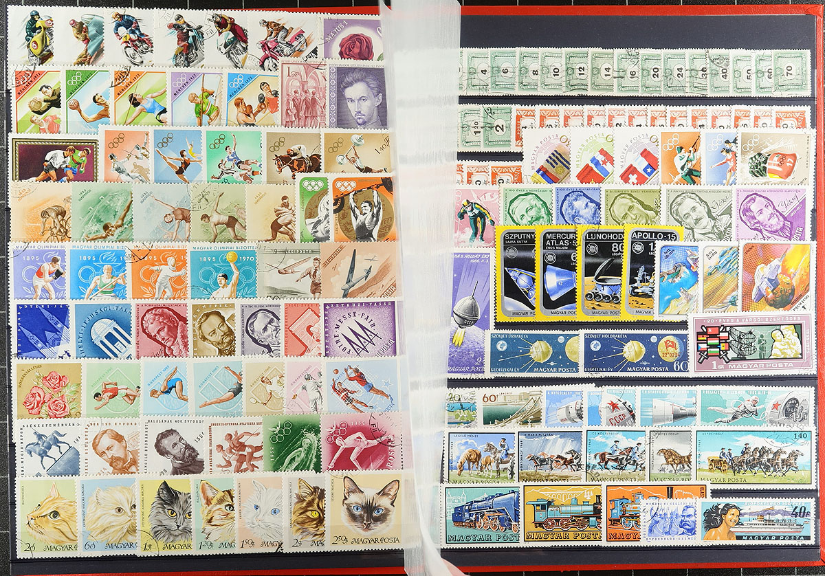 Large accumulation of used Hungary, 1870's-1980's, containing many thousands of stamps in a stockbook and album, along with many album and stock pages. A cursory check indicated material ranging from Scott #9/3140, with singles, sets, souvenir sheets, and back of the book stamps, with a few items cataloguing in the $5 to $10 range. Owner's 2016 catalogue value for a portion of the lot totals US$546.00, leaving finds, including town postmark types to the dedicated collector. A nice lot for the Hungary or worldwide collector, overall fine to very fine. Estimate =