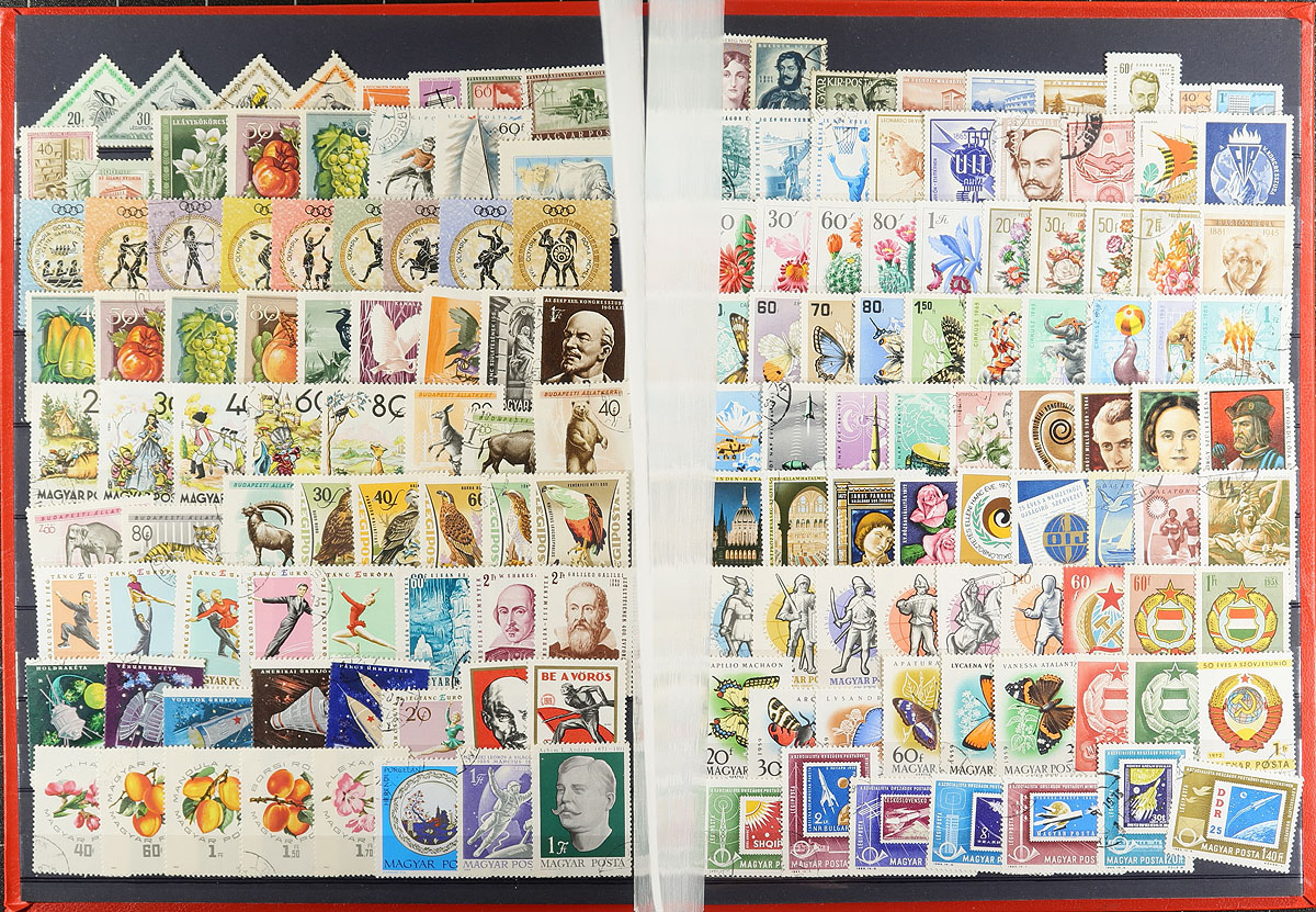 Large accumulation of used Hungary, 1870's-1980's, containing many thousands of stamps in a stockbook and album, along with many album and stock pages. A cursory check indicated material ranging from Scott #9/3140, with singles, sets, souvenir sheets, and back of the book stamps, with a few items cataloguing in the $5 to $10 range. Owner's 2016 catalogue value for a portion of the lot totals US$546.00, leaving finds, including town postmark types to the dedicated collector. A nice lot for the Hungary or worldwide collector, overall fine to very fine. Estimate =