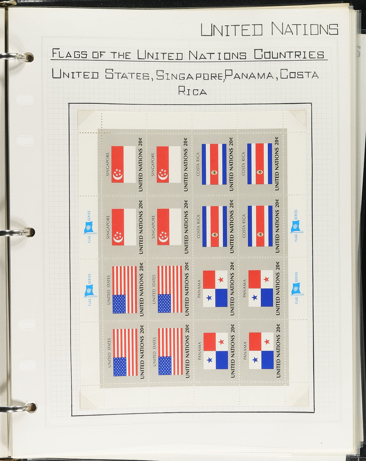 Collection / accumulation of primarily never hinged United Nations, 1950's-2000's, containing over 1,000 stamps in 2 albums, stock pages, and glassines. We note an almost complete collection of New York and Geneva in two Lighthouse Luxus DL springback albums with hingeless pages ranging from 1951 to 1981, along with a stockbook with singles and sheets from the 1960s to the 1980s, a binder of "Flag" series sheetlets, a few presentation and annual collections, and more. A view of catalogue values indicate some items cataloguing $10 and up, including Scott #38 souvenir sheet (nh, c.v. $50). Owner's 2014 Scott catalogue value for the lot totals US$818.00 ($1104.30 CDN). A nice lot for collectors and dealers alike. Estimate =