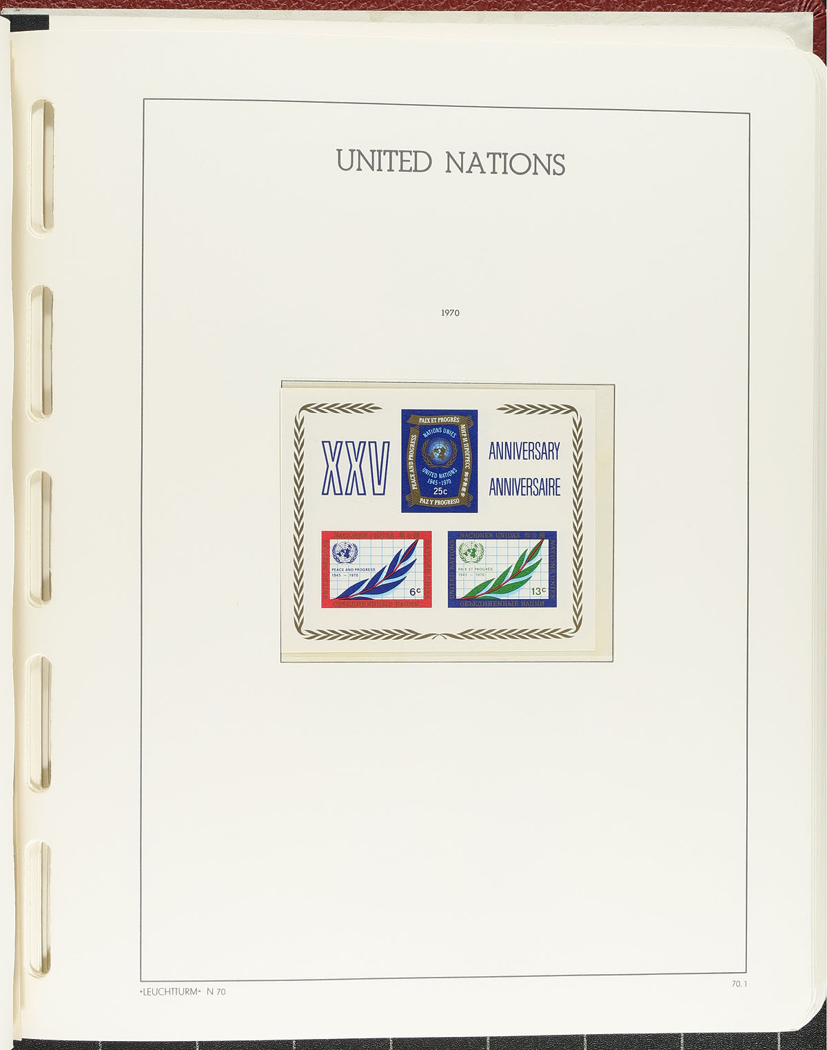 Collection / accumulation of primarily never hinged United Nations, 1950's-2000's, containing over 1,000 stamps in 2 albums, stock pages, and glassines. We note an almost complete collection of New York and Geneva in two Lighthouse Luxus DL springback albums with hingeless pages ranging from 1951 to 1981, along with a stockbook with singles and sheets from the 1960s to the 1980s, a binder of "Flag" series sheetlets, a few presentation and annual collections, and more. A view of catalogue values indicate some items cataloguing $10 and up, including Scott #38 souvenir sheet (nh, c.v. $50). Owner's 2014 Scott catalogue value for the lot totals US$818.00 ($1104.30 CDN). A nice lot for collectors and dealers alike. Estimate =