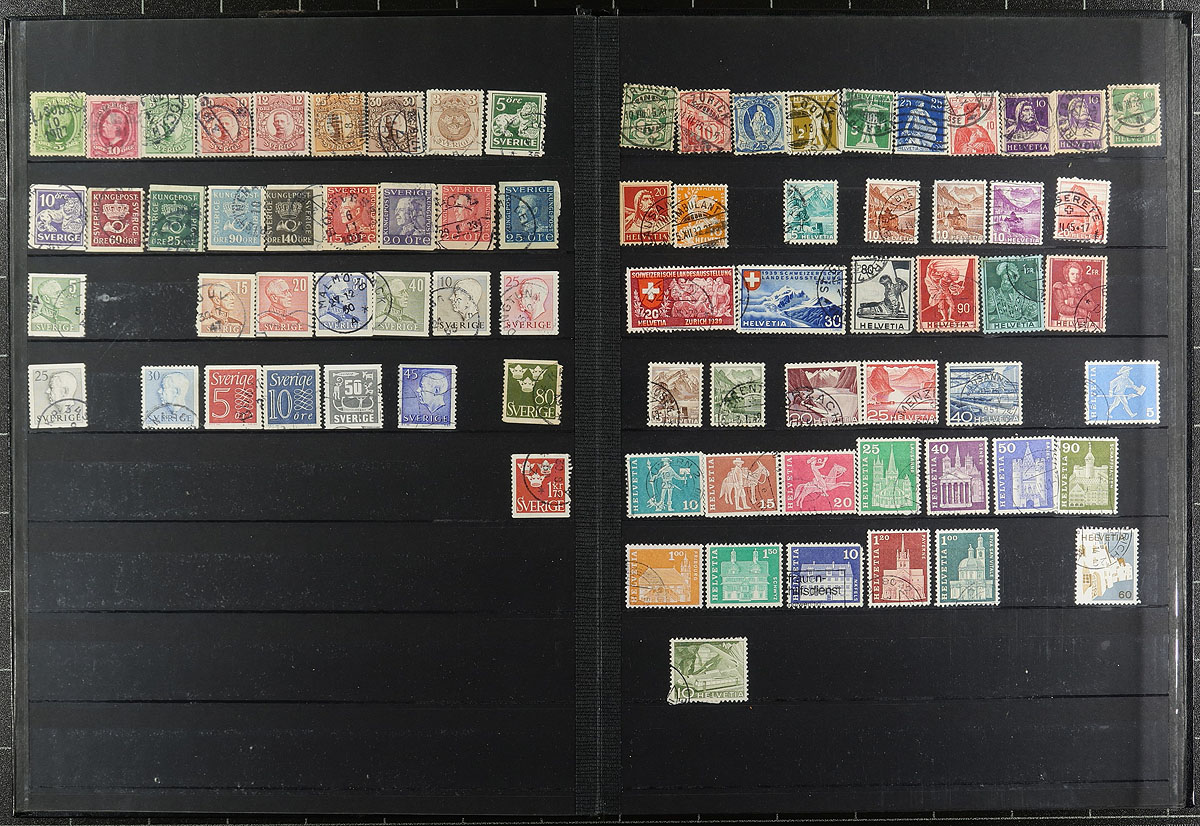 Collections / accumulations of a few thousand worldwide stamps in albums, binders, and stock pages, filling a carton. There is much to digest here including an album of British Commonwealth material, an album each containing Switzerland, Palau, and Tannu Tuva, along with better representation from South America. Almost all the material appears to be used from the 1900s onwards, with strength from the 1930's to the 1960's, leaving better finds to the worldwide collector. Estimate =