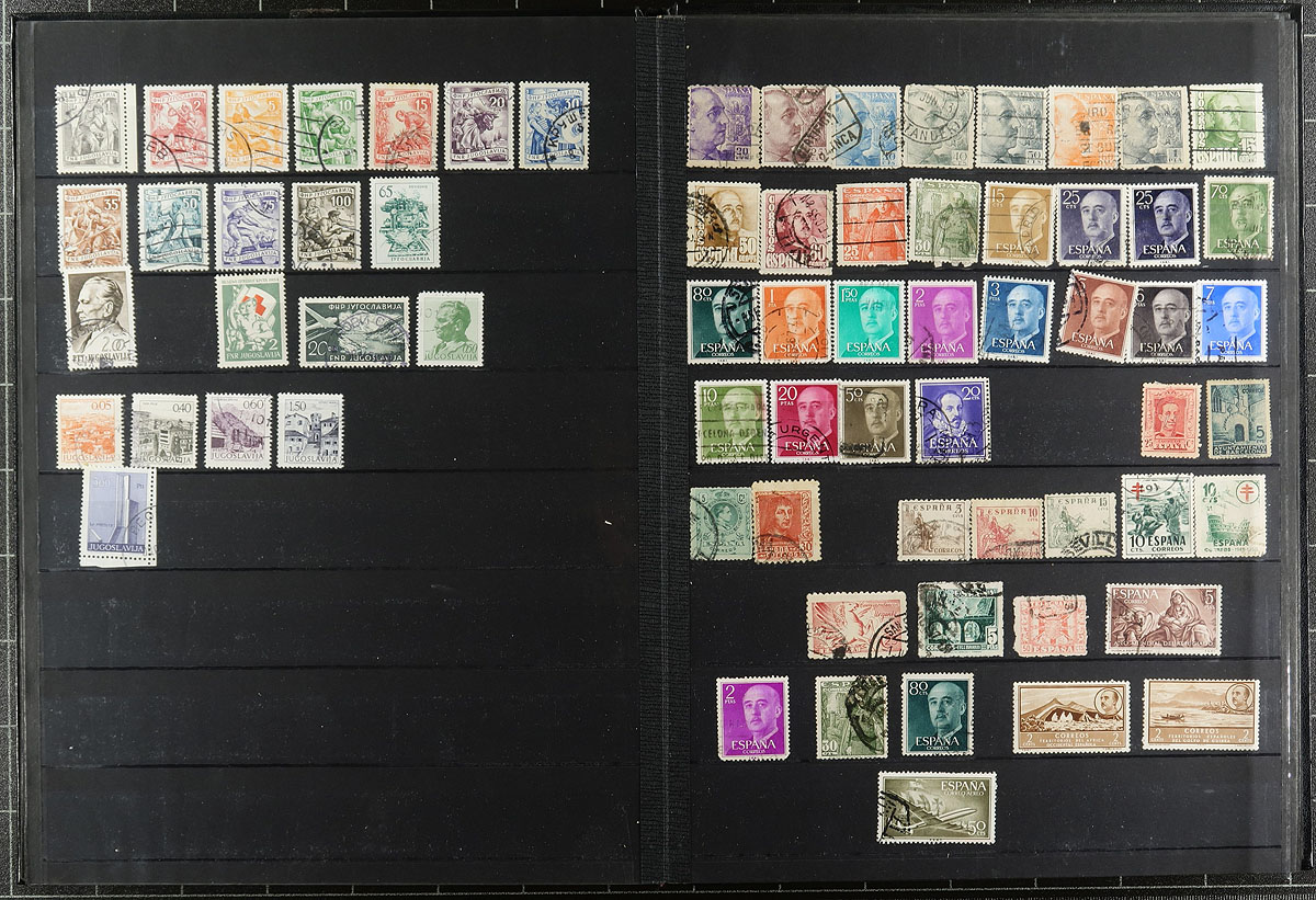 Collections / accumulations of a few thousand worldwide stamps in albums, binders, and stock pages, filling a carton. There is much to digest here including an album of British Commonwealth material, an album each containing Switzerland, Palau, and Tannu Tuva, along with better representation from South America. Almost all the material appears to be used from the 1900s onwards, with strength from the 1930's to the 1960's, leaving better finds to the worldwide collector. Estimate =