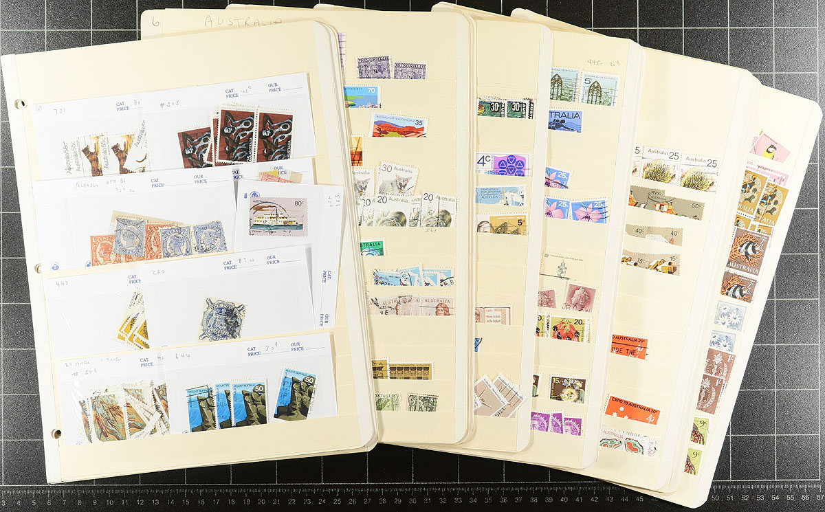 Collections / accumulations of a few thousand worldwide stamps in albums, binders, and stock pages, filling a carton. There is much to digest here including an album of British Commonwealth material, an album each containing Switzerland, Palau, and Tannu Tuva, along with better representation from South America. Almost all the material appears to be used from the 1900s onwards, with strength from the 1930's to the 1960's, leaving better finds to the worldwide collector. Estimate =