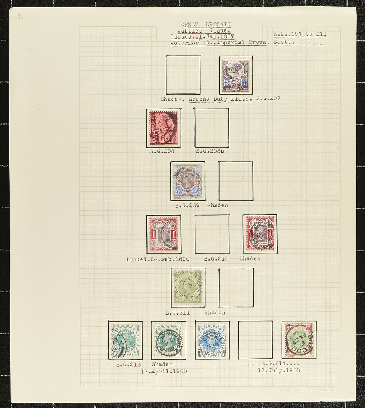 Accumulation of used Great Britain, 1840's-2001, containing a few thousand stamps in several album or stock pages, along with a few glassines. The lot generally ranges from Scott #3/2006, noting roughly 100 Victorian issues, Seahorses (2sh-5sh), back of the book issues, and more. A very quick check of material revealed Scott #s 3, 4, 26, 61 (x2, plate 11, 14), 99, 101, 140, along with several Jubilee issues, and more, noting several 'sock on the nose' town cancels. A nice accumulation for the Great Britain collector with potential finds for the dedicated collector. A few faults to be expected, overall fine to very fine. Estimate =