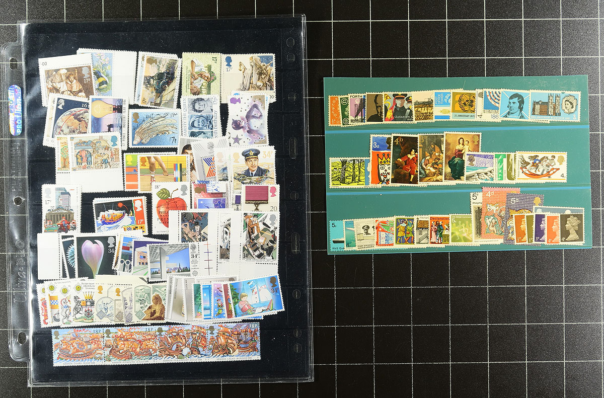 Great Britain Accumulation of primarily never hinged Great Britain, 1910-1990's, containing many hundreds of stamps in several stock pages. The lot generally ranges from Scott #145/1448, noting several sets, gutter pairs, blocks, and more. A spot check indicated some material cataloguing $5 to $10 and up each, with over half the lot catalogued by the owner using a 2016 Scott totaling US$578.00. Face value alone is at least a few hundred pounds. A nice clean lot with a variety of purposes for collectors and dealers alike. Clean and very fine. Estimate =