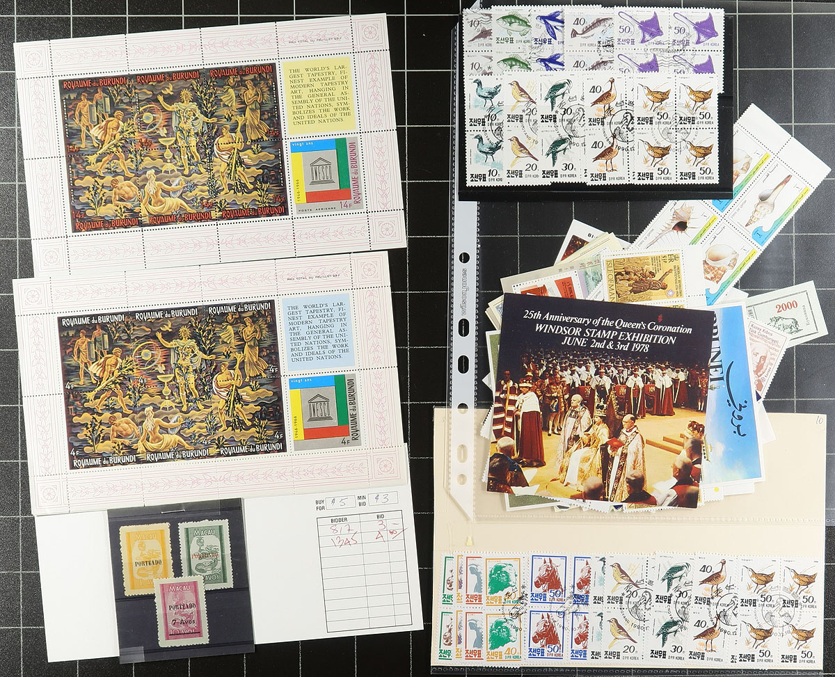 Eclectic accumulation of worldwide material including an old time album of many hundreds of used worldwide stamps, mint and used singles, souvenir sheets, and more in album or stock pages, glassines, etc. We note better representation from China and Japan, European countries, and more, with material appearing to range from the 1890s up to the 1970s, with material possible on either side of the given range. A spot check indicated a few items in the $10 to $20, leaving potential finds to the dedicated collector. Online photos show an overview of this interesting grouping. A few faults noted, overall fine to very fine. Estimate =