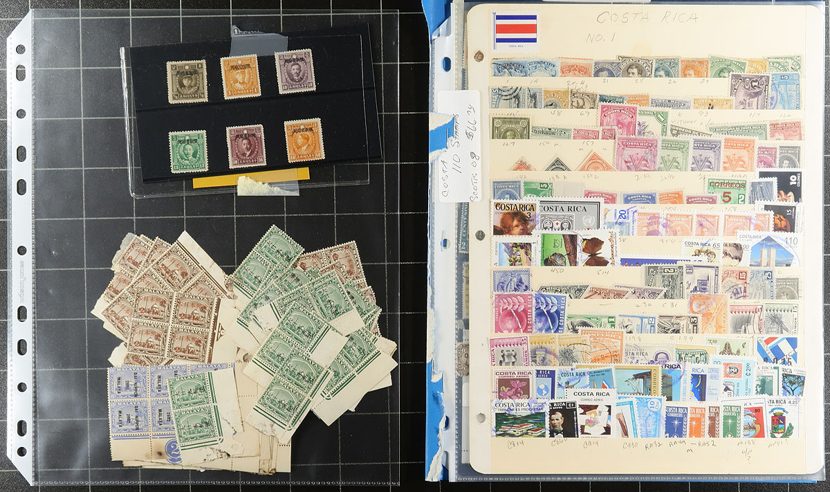 Eclectic accumulation of worldwide material including an old time album of many hundreds of used worldwide stamps, mint and used singles, souvenir sheets, and more in album or stock pages, glassines, etc. We note better representation from China and Japan, European countries, and more, with material appearing to range from the 1890s up to the 1970s, with material possible on either side of the given range. A spot check indicated a few items in the $10 to $20, leaving potential finds to the dedicated collector. Online photos show an overview of this interesting grouping. A few faults noted, overall fine to very fine. Estimate =