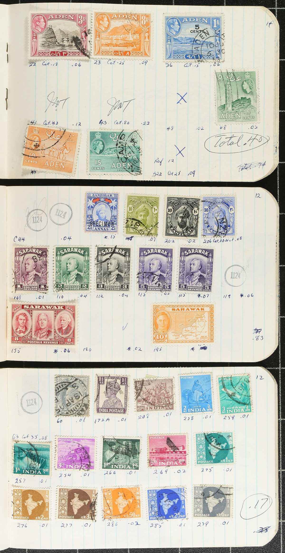 Eclectic accumulation of worldwide material including an old time album of many hundreds of used worldwide stamps, mint and used singles, souvenir sheets, and more in album or stock pages, glassines, etc. We note better representation from China and Japan, European countries, and more, with material appearing to range from the 1890s up to the 1970s, with material possible on either side of the given range. A spot check indicated a few items in the $10 to $20, leaving potential finds to the dedicated collector. Online photos show an overview of this interesting grouping. A few faults noted, overall fine to very fine. Estimate =