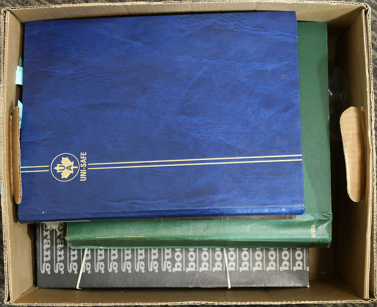 Large accumulation of used Canada, Small Queens to modern issues. The lot contains roughly 25,000 stamps in a variety of formats and is nicely organized considering the amount of material present. The lot begins with a Lighthouse stockbook containing roughly 4,000 pre-1950 issues (mainly low to medium value definitives, with plenty of postmark interest); a Lighthouse stockbook with roughly 3,000 stamps of mostly high denomination stamps from the 1960s onwards; a binder containing over 1,000 stamps of back of the book material (War Tax, revenues, special delivery, a few precancels, along with modern covers and used booklet panes, and more); and roughly 17,000 stamps neatly organized by Scott number in glassines or plastic pouches (1950's onwards). A nice potentially high cataloguing lot for the used collector as we note a good variety of cancel types including several 'socked on the nose' town postmarks. Should be well worth our low estimate of 1c per stamp. Estimate =