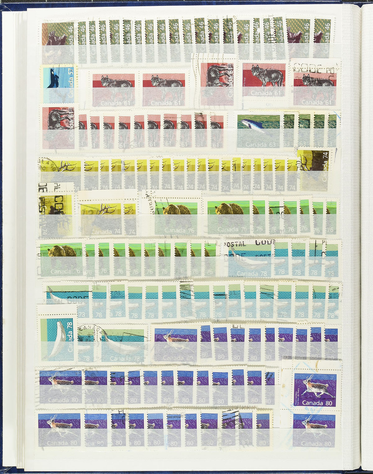 Large accumulation of used Canada, Small Queens to modern issues. The lot contains roughly 25,000 stamps in a variety of formats and is nicely organized considering the amount of material present. The lot begins with a Lighthouse stockbook containing roughly 4,000 pre-1950 issues (mainly low to medium value definitives, with plenty of postmark interest); a Lighthouse stockbook with roughly 3,000 stamps of mostly high denomination stamps from the 1960s onwards; a binder containing over 1,000 stamps of back of the book material (War Tax, revenues, special delivery, a few precancels, along with modern covers and used booklet panes, and more); and roughly 17,000 stamps neatly organized by Scott number in glassines or plastic pouches (1950's onwards). A nice potentially high cataloguing lot for the used collector as we note a good variety of cancel types including several 'socked on the nose' town postmarks. Should be well worth our low estimate of 1c per stamp. Estimate =