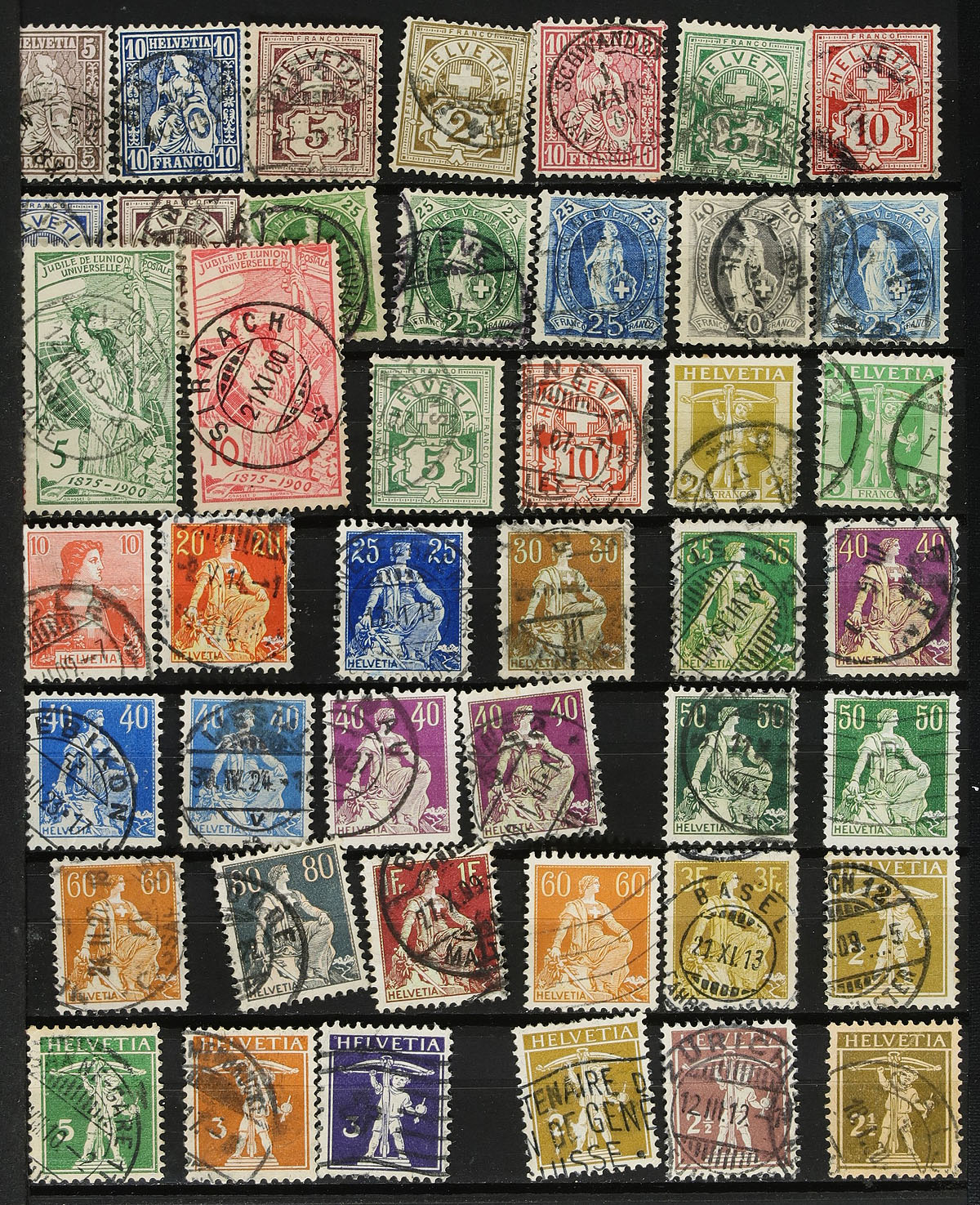 Collection / accumulation of used Switzerland, 1862-2007, containing over 1,500 stamps in several stock pags and two albums. The lot generally ranges from Scott #43/1274, including semi-postals and other bacak of the book issues, with a spot check indicating a few items cataloging $10 and up. Owner's 2013 Scott catalogue value for the lot totals US$1,091.00, with mild duplication throughout. A nice lot from this popular collecting country, a few small faults with a few of the early issues, overall fine to very fine. Estimate =