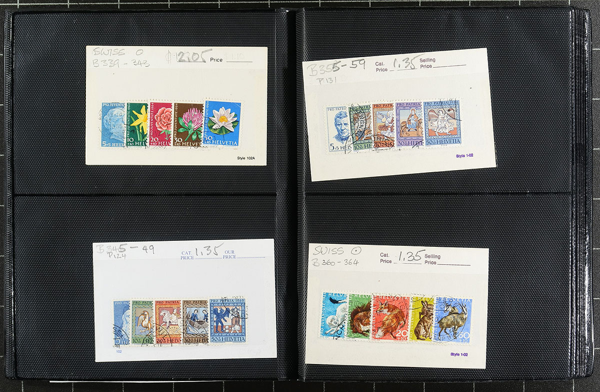 Collection / accumulation of used Switzerland, 1862-2007, containing over 1,500 stamps in several stock pags and two albums. The lot generally ranges from Scott #43/1274, including semi-postals and other bacak of the book issues, with a spot check indicating a few items cataloging $10 and up. Owner's 2013 Scott catalogue value for the lot totals US$1,091.00, with mild duplication throughout. A nice lot from this popular collecting country, a few small faults with a few of the early issues, overall fine to very fine. Estimate =