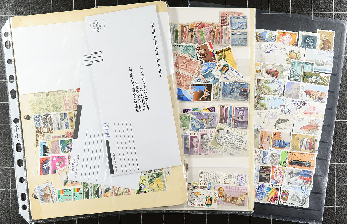 Accumulation of used worldwide, containing over 2,400 stamps in several stockpages and an album. A cursory check indicated material generally ranging from the 1890s to the 2000's, with better representation from Czechoslovakia (roughly 600 stamps in an album), along with British Commonwealth and European countries, noting some singles and sets cataloguing $10 and up. Most of the material has been catalogued by the owner using older Scott values with the lot totaling US$2,228.00 ($3007.80 CDN), leaving better finds for the dedicated collector. Online photos show an overview with a few faults probable, overall fine to very fine. Estimate =