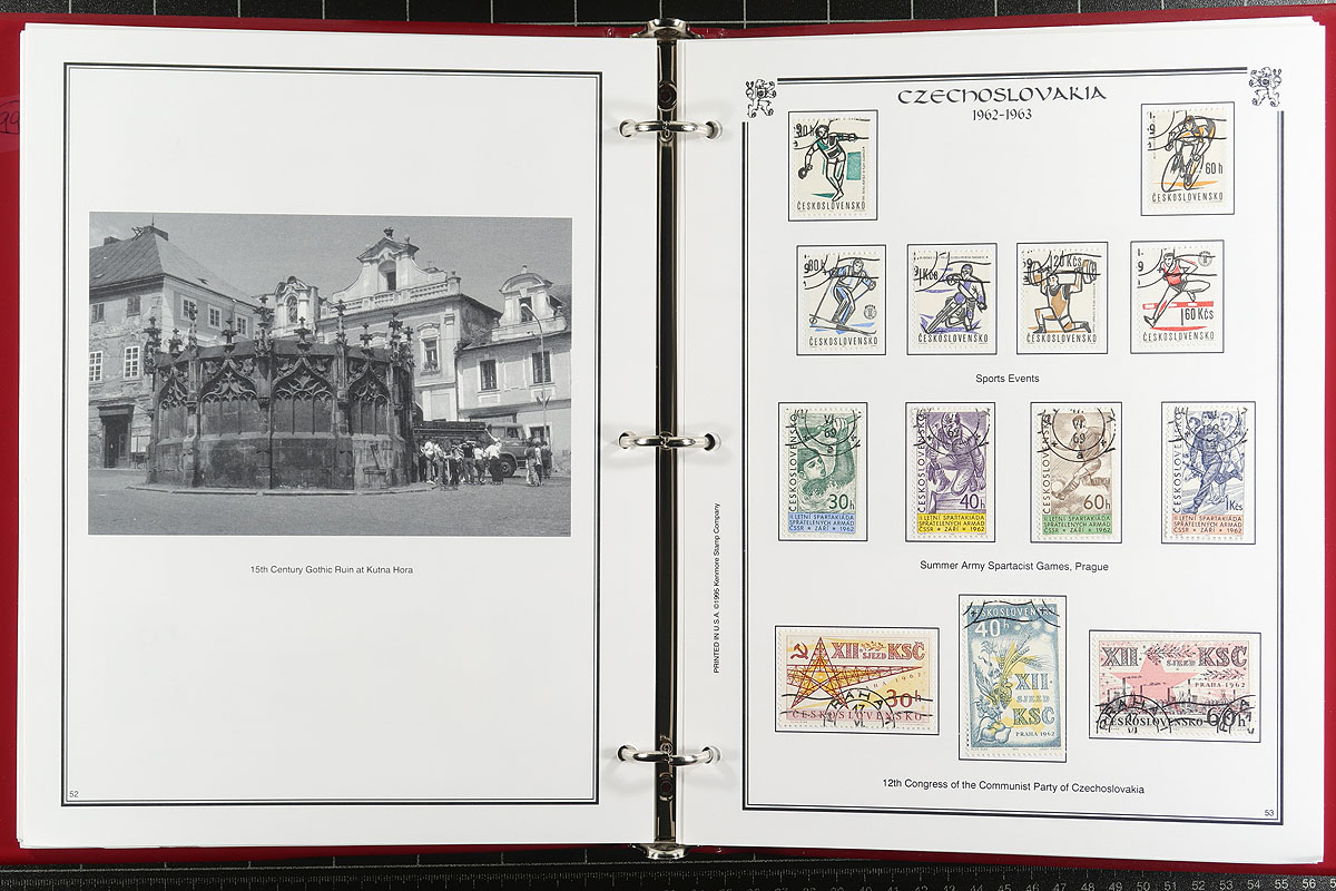 Accumulation of used worldwide, containing over 2,400 stamps in several stockpages and an album. A cursory check indicated material generally ranging from the 1890s to the 2000's, with better representation from Czechoslovakia (roughly 600 stamps in an album), along with British Commonwealth and European countries, noting some singles and sets cataloguing $10 and up. Most of the material has been catalogued by the owner using older Scott values with the lot totaling US$2,228.00 ($3007.80 CDN), leaving better finds for the dedicated collector. Online photos show an overview with a few faults probable, overall fine to very fine. Estimate =