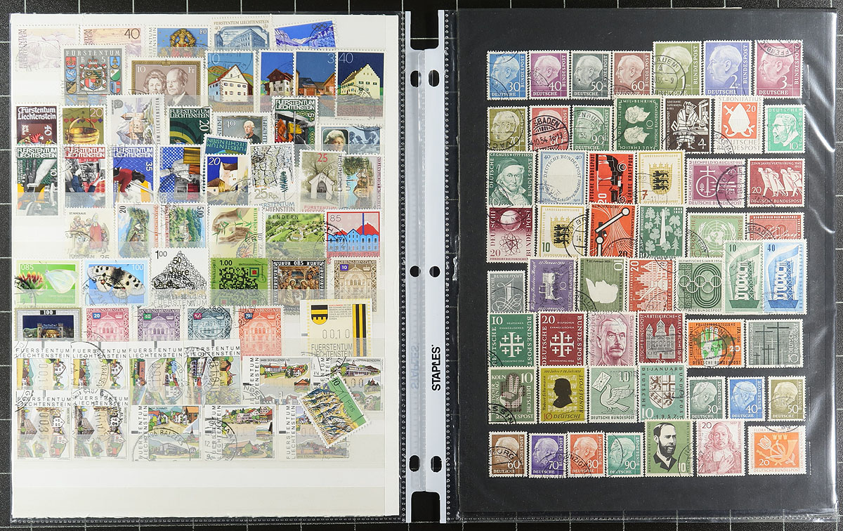 Europe. Accumulation of primarily used stamps from European countries, containing roughly 950 stamps in over 20 stock pages. The lot appears to range from 1990 to 2010 with better representation from Russia, Scandinavia, Germany, Liechtenstein, along with a few other, with some material, including semi-postals, cataloguing $10 and up each. Owner's 2016 Scott catalogue value for the lot totals US$1,328.00 ($1792.80 CDN). A nice lot for the worldwide collector, overall fine to very fine. Estimate =