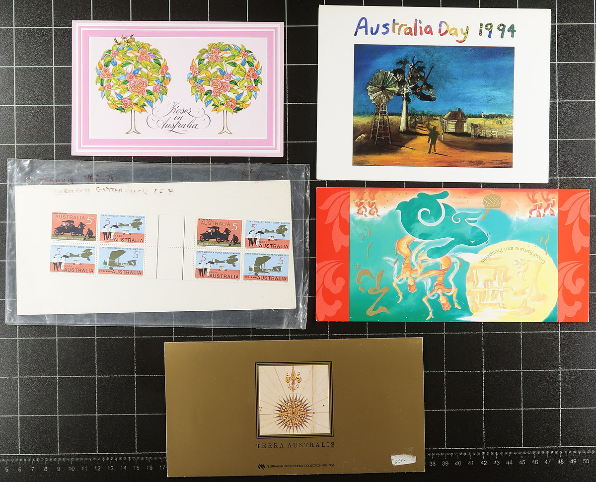 Accumulation of primarily never hinged Australia, 1960's-2001, containing many hundreds of stamps in stock or album pages, several glassines and presentation packs. The lot generally ranges from Scott #388/1954, including sets, blocks, and more. A spot check indicated roughly 40 presentation packs, primarily from the 1980's to the 1990's, with some items cataloguing $10 and up, with face value alone estimated to be in the $300.00 range. A nice lot for the Australia collector or postage user, overall fine to very fine. Estimate =