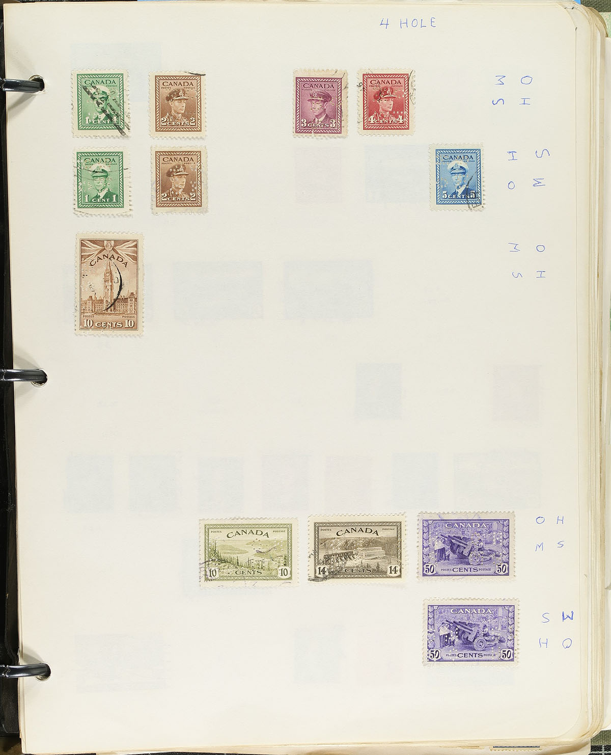 Collection of worldwide used stamps on a few hundred homemade pages. The collection is well organized ranging from A to W countries, noting better representation from Canada (including back of the book issues, Officials in particular), France, Germany, and other European countries, with smaller representation from other regions. A spot check indicated a few singles and partial sets cataloguing in the $5 to $10 range, leaving better finds to the dedicated collector, including better postmark types and 'socked on the nose' town cancles. Online photos show a sampling, overall fine to very fine. Estimate =