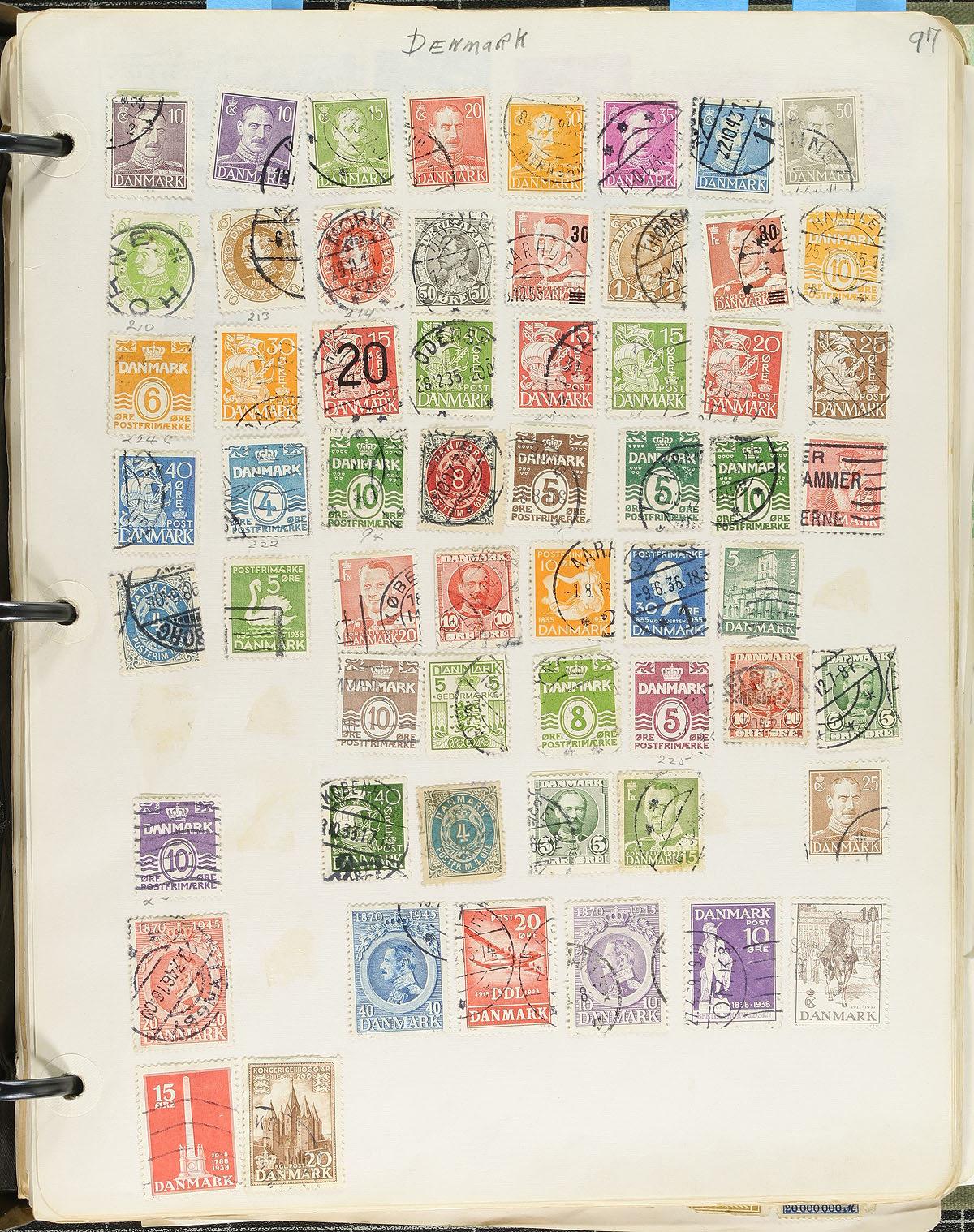 Collection of worldwide used stamps on a few hundred homemade pages. The collection is well organized ranging from A to W countries, noting better representation from Canada (including back of the book issues, Officials in particular), France, Germany, and other European countries, with smaller representation from other regions. A spot check indicated a few singles and partial sets cataloguing in the $5 to $10 range, leaving better finds to the dedicated collector, including better postmark types and 'socked on the nose' town cancles. Online photos show a sampling, overall fine to very fine. Estimate =
