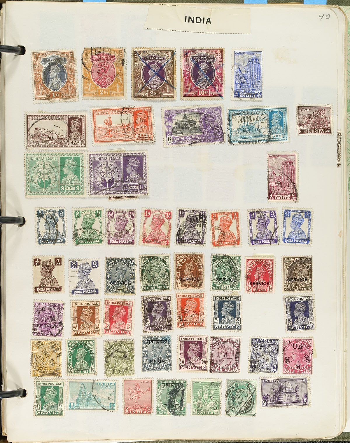 Collection of worldwide used stamps on a few hundred homemade pages. The collection is well organized ranging from A to W countries, noting better representation from Canada (including back of the book issues, Officials in particular), France, Germany, and other European countries, with smaller representation from other regions. A spot check indicated a few singles and partial sets cataloguing in the $5 to $10 range, leaving better finds to the dedicated collector, including better postmark types and 'socked on the nose' town cancles. Online photos show a sampling, overall fine to very fine. Estimate =