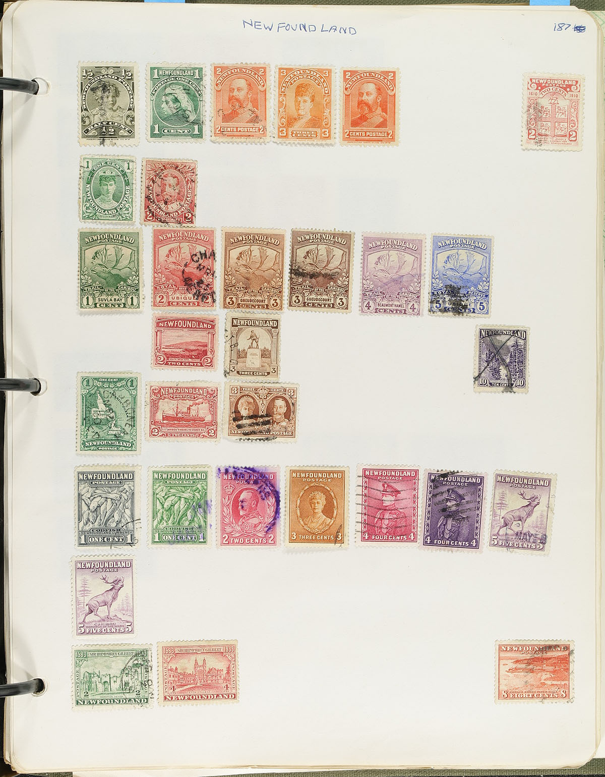 Collection of worldwide used stamps on a few hundred homemade pages. The collection is well organized ranging from A to W countries, noting better representation from Canada (including back of the book issues, Officials in particular), France, Germany, and other European countries, with smaller representation from other regions. A spot check indicated a few singles and partial sets cataloguing in the $5 to $10 range, leaving better finds to the dedicated collector, including better postmark types and 'socked on the nose' town cancles. Online photos show a sampling, overall fine to very fine. Estimate =