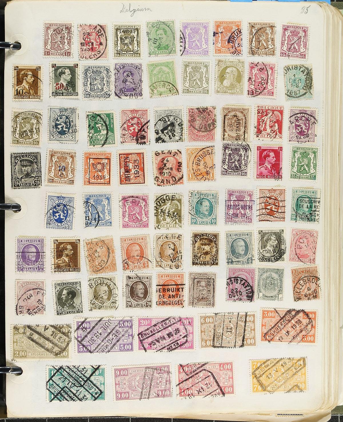 Collection of worldwide used stamps on a few hundred homemade pages. The collection is well organized ranging from A to W countries, noting better representation from Canada (including back of the book issues, Officials in particular), France, Germany, and other European countries, with smaller representation from other regions. A spot check indicated a few singles and partial sets cataloguing in the $5 to $10 range, leaving better finds to the dedicated collector, including better postmark types and 'socked on the nose' town cancles. Online photos show a sampling, overall fine to very fine. Estimate =