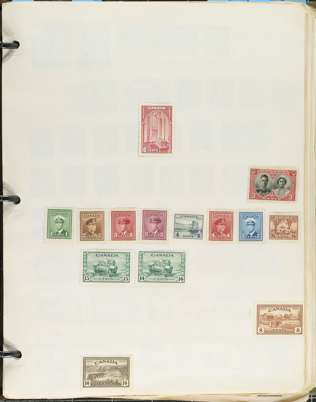 Collection of worldwide used stamps on a few hundred homemade pages. The collection is well organized ranging from A to W countries, noting better representation from Canada (including back of the book issues, Officials in particular), France, Germany, and other European countries, with smaller representation from other regions. A spot check indicated a few singles and partial sets cataloguing in the $5 to $10 range, leaving better finds to the dedicated collector, including better postmark types and 'socked on the nose' town cancles. Online photos show a sampling, overall fine to very fine. Estimate =