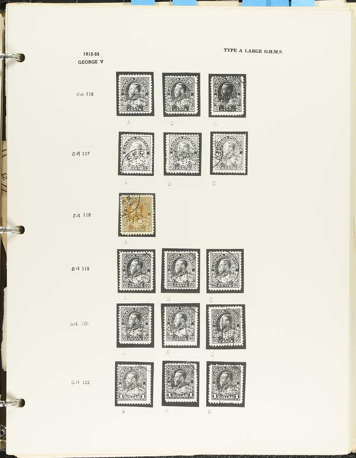 Collection of primarily used Officials and other "back of the book" issues, containing a few hundred items on homemade or Wrigley album pages. The collection is better than your average starter collection as we note a few better items including perforated 5-hole officials with Unitrade #s O8-118 (used, $30), O8-234-235, O8-242 (used, $35), and Officially Sealed OX1 (used, $100, counted as fine), along with 4-hole 50c Munitions (x2), $1 Destroyer, and 50c Lumbering (x2). The collection also includes G overprint Officials, a few revenues, and other back of the book items, with a few cataloguing $5 and up each. A nice collection that should be continued, overall fine to very fine. Estimate =
