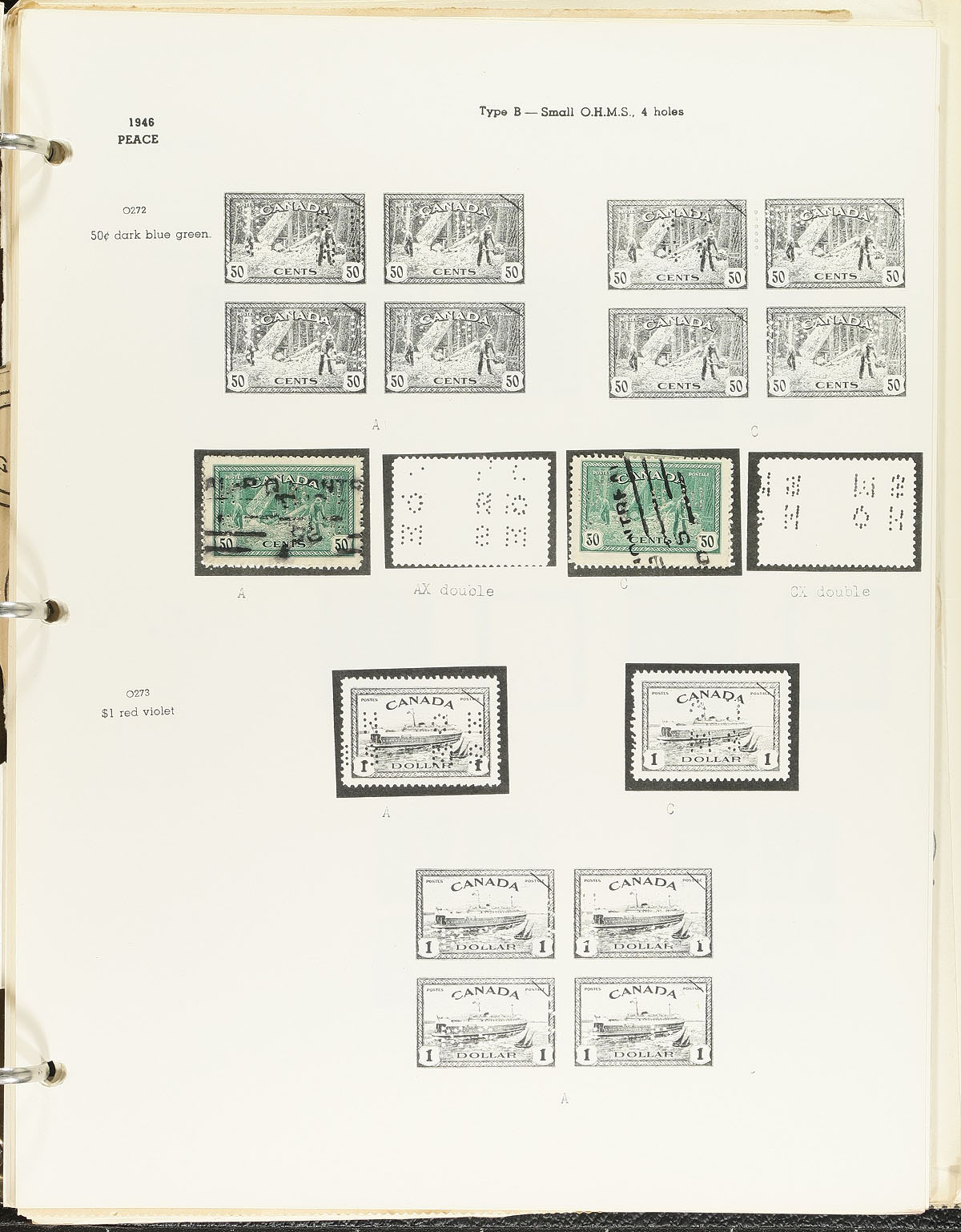 Collection of primarily used Officials and other "back of the book" issues, containing a few hundred items on homemade or Wrigley album pages. The collection is better than your average starter collection as we note a few better items including perforated 5-hole officials with Unitrade #s O8-118 (used, $30), O8-234-235, O8-242 (used, $35), and Officially Sealed OX1 (used, $100, counted as fine), along with 4-hole 50c Munitions (x2), $1 Destroyer, and 50c Lumbering (x2). The collection also includes G overprint Officials, a few revenues, and other back of the book items, with a few cataloguing $5 and up each. A nice collection that should be continued, overall fine to very fine. Estimate =