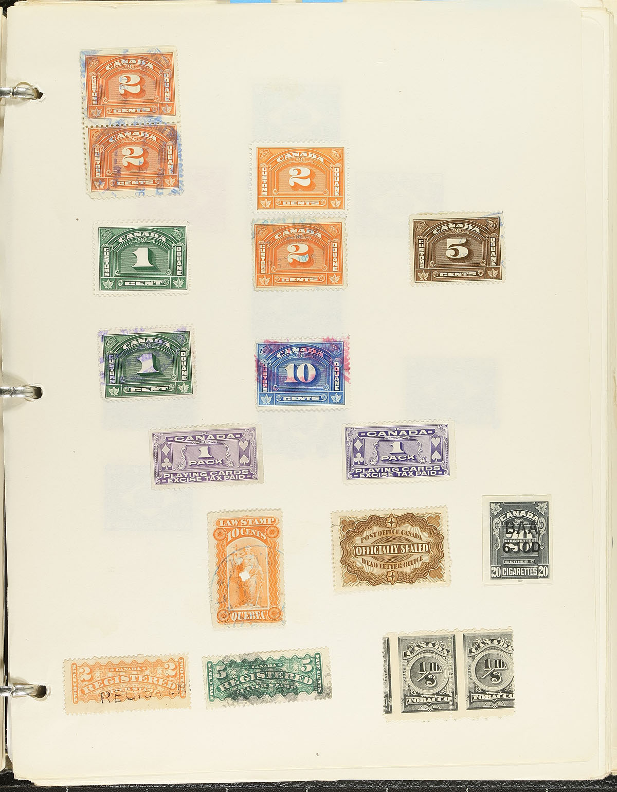 Collection of primarily used Officials and other "back of the book" issues, containing a few hundred items on homemade or Wrigley album pages. The collection is better than your average starter collection as we note a few better items including perforated 5-hole officials with Unitrade #s O8-118 (used, $30), O8-234-235, O8-242 (used, $35), and Officially Sealed OX1 (used, $100, counted as fine), along with 4-hole 50c Munitions (x2), $1 Destroyer, and 50c Lumbering (x2). The collection also includes G overprint Officials, a few revenues, and other back of the book items, with a few cataloguing $5 and up each. A nice collection that should be continued, overall fine to very fine. Estimate =