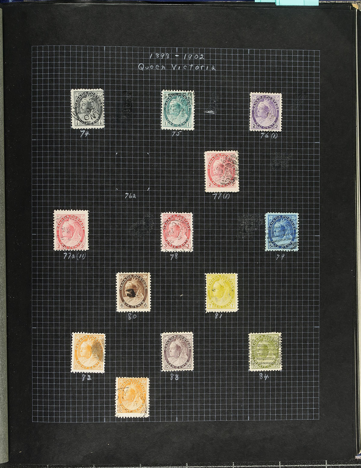 Lovely mint and used collection of Canada, 1859-1971, containing many hundreds of stamps on quadrille pages housed in two springback albums. This well organized collection ranges from Scott #14/557, beginning with used material from 1859 to 1950, and then transitions to mint and a used example for almost every issue up to 1971. Just some of the better material includes #s 14, 15 (x6), 18-19, 21-22, 24, 25 (x2), 30, along with 64 Small Queens including 10c (x3), 20c and 50c Widow Weeds, a selection of Jubilees including 20c and 50c issues, and continues with sets and partial sets of Leafs, Numerals, Edwards, Quebecs, Admirals, Scrolls, up to the Peace issues, including coils and back of the book issues. The collection post 1950 includes mint and used material including an attempt to have mint and used mini-panes, booklet panes, Christmas centre blocks of 4, tagged issues, and much more. Postmark interest includes cds, squared circles, duplex, and more. A lovely collection with a potentially high catalogue value, a few small faults with a few of the stamps, overall fine to very fine. Estimate =