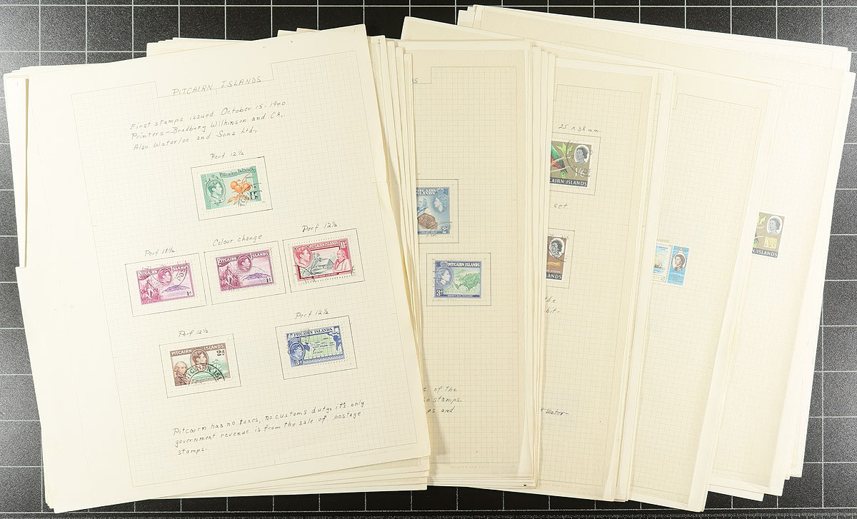 Consignment remainders of mint and used worldwide stamps, containing a likely few thousand stamps in a variety of formats including stock books, album pages, glassines, and more. Just a cursory check indicated better representation from French Colonies (mint and used stamps in several glassines, album pages, and a stockbook), several album pages of used Pitcairn Islands (noting used 1949 Silver Wedding high value, c.v. $52.50), along with British Commonwealth material and more, noting the majority of material appearing to range from the 1930s to the 1960s. A nice lot with possible finds for the worldwide collector. Estimate =