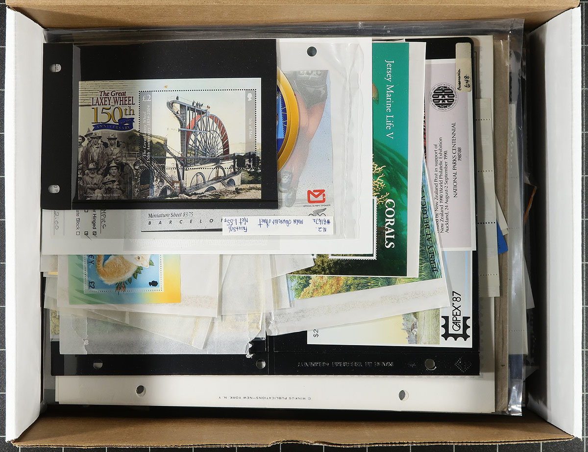 Accumulation of roughly 160 souvenir sheets and sheetlets, 1960's-1990's, nicely arranged in glassines or in stock pages, noting betting representation from Hungary (including a few imperforates), Poland, United Nations, and smaller representation from a few other regions. A spot check indicated some material cataloguing $7 to $30 each, with owner's 2012 Scott catalogue value for the majority of the lot totaling US$1,163.00 ($1570.05 CDN). A nice lot for topical and thematic collectors as we note a wide variety of suitable subjects, and for dealers as a number of items have been identified by Scott number and priced accordingly. Overall fine to very fine. Estimate =