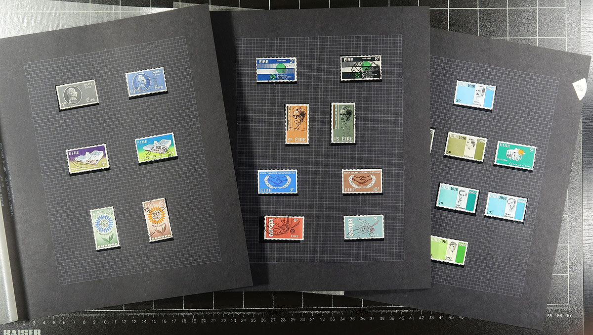 Accumulation of used Ireland, 1922-2009, containing roughly 1,500 stamps in roughly 30 album or stock pages. The lot generally ranges from Scott #1/1831, including back of the book issues, noting singles and sets cataloguing in the $10 range and up, including the popular bird set from the late 1990's to the early 2000's. Owner's 2011 Scott value for the lot totals US$1,391.00 ($1877.00 CDN), leaving better finds for the dedicated collector. A few small faults with a few of the stamps, with mild duplication for most issues throughout, overall fine to very fine. Estimate =