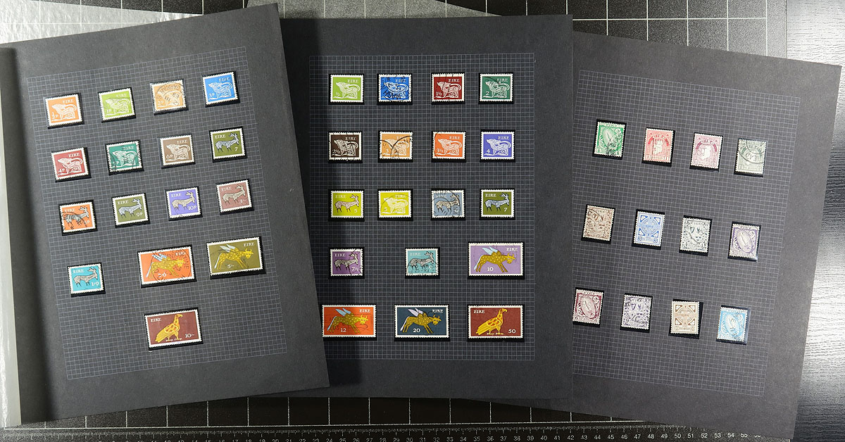 Accumulation of used Ireland, 1922-2009, containing roughly 1,500 stamps in roughly 30 album or stock pages. The lot generally ranges from Scott #1/1831, including back of the book issues, noting singles and sets cataloguing in the $10 range and up, including the popular bird set from the late 1990's to the early 2000's. Owner's 2011 Scott value for the lot totals US$1,391.00 ($1877.00 CDN), leaving better finds for the dedicated collector. A few small faults with a few of the stamps, with mild duplication for most issues throughout, overall fine to very fine. Estimate =