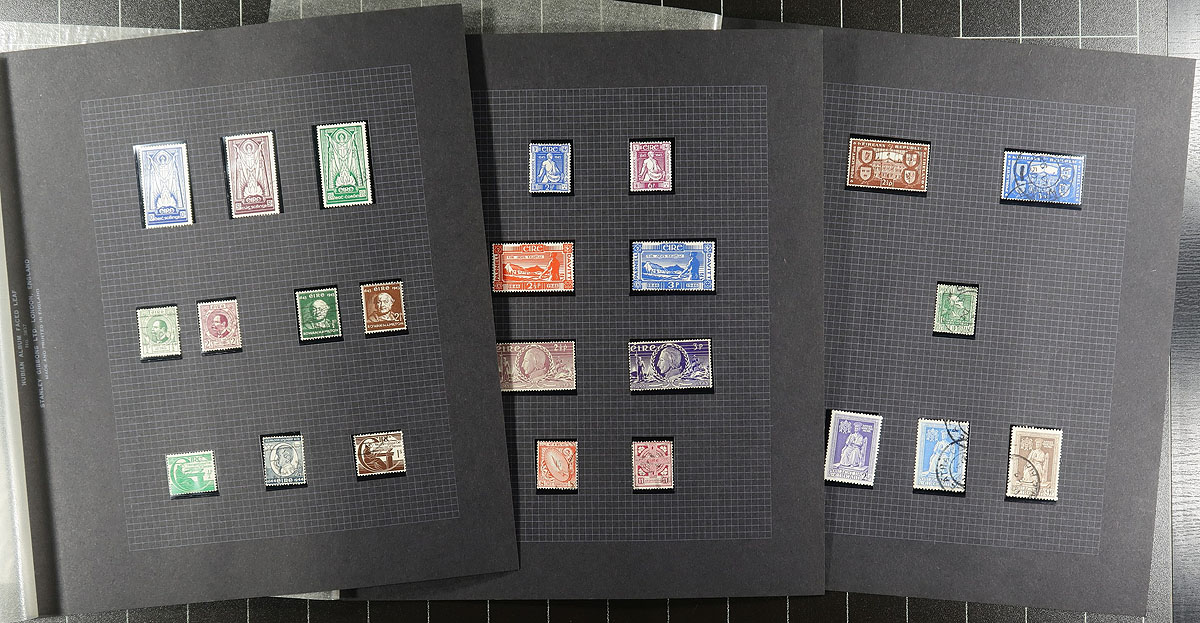 Accumulation of used Ireland, 1922-2009, containing roughly 1,500 stamps in roughly 30 album or stock pages. The lot generally ranges from Scott #1/1831, including back of the book issues, noting singles and sets cataloguing in the $10 range and up, including the popular bird set from the late 1990's to the early 2000's. Owner's 2011 Scott value for the lot totals US$1,391.00 ($1877.00 CDN), leaving better finds for the dedicated collector. A few small faults with a few of the stamps, with mild duplication for most issues throughout, overall fine to very fine. Estimate =